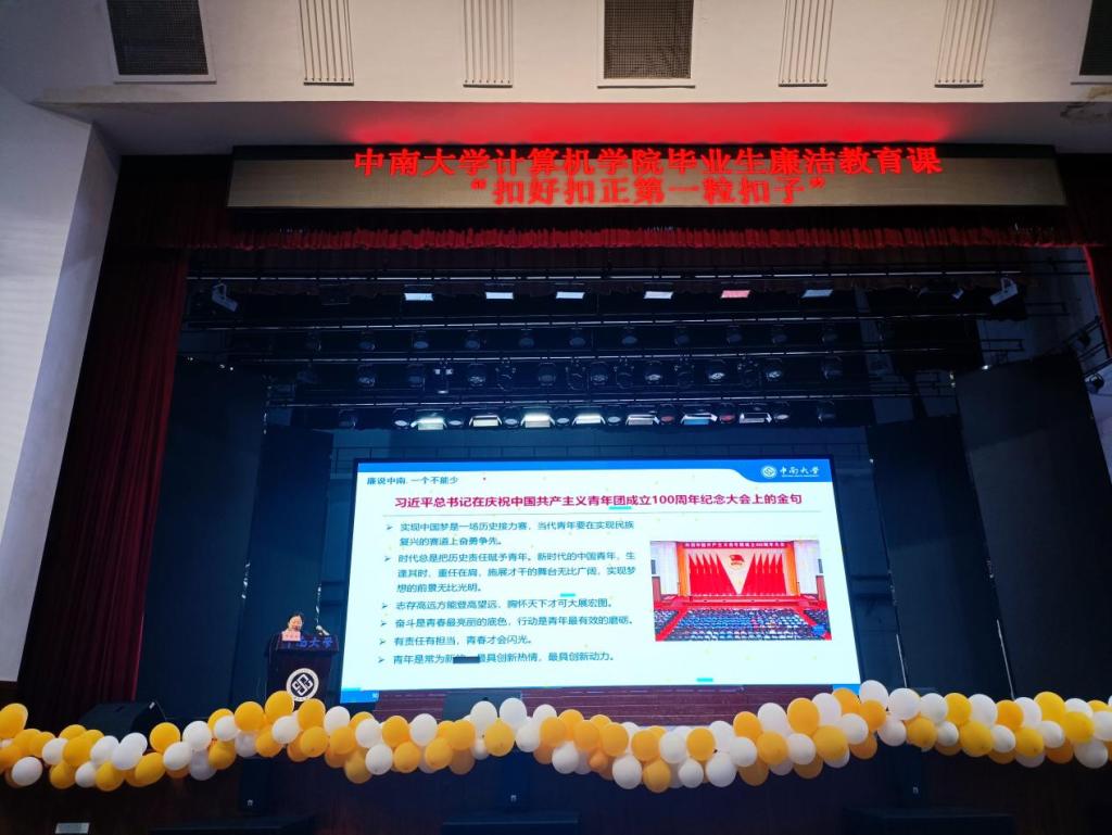 在中南大学科教南楼305教室、新校区信息楼报告厅、铁道礼堂分三场开展“扣正扣好第一粒扣子”毕业生廉洁教育讲座。计算机新濠娱乐城