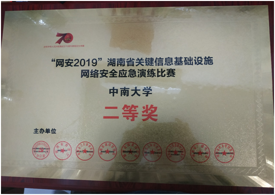 11月28日,2019湖南(长沙)网络安全·智能制造大会在长沙国际会展中心正式开幕,会上对2019“湖湘杯”网络安全技能大赛系列活动进行表彰。中南大学极光网络安全实验室的同学在2019“湖湘杯”网络安全技能大赛系列活动——关键信息基础设施网络安全应急演练比赛中获得二等奖,同时在湖湘杯网络技能大赛决赛中获得优胜奖。