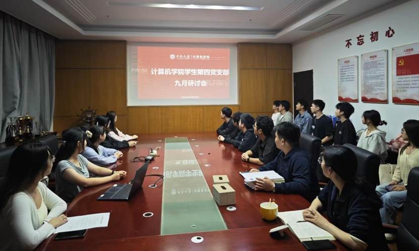 2025年9月29日下午,中南大学学生第四党支部在新校区信息楼114教室成功召开了支部大会。本次会议议程紧凑、主题鲜明,主要包括理论学习研讨会与新一届支委选举换届工作,全体党员参会,现场气氛严肃而热烈。
