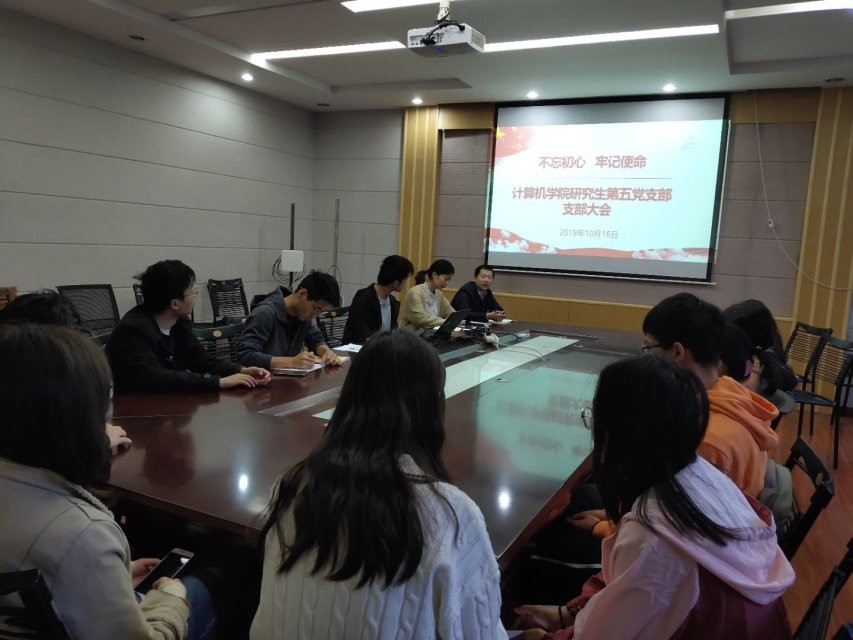 研究生第五支部在本部计算机楼212会议室开展了“立德树人担使命”集中学习研讨活动。研讨由支部书记刘珍珍同志主持,支部全体党员参加了此次活动。