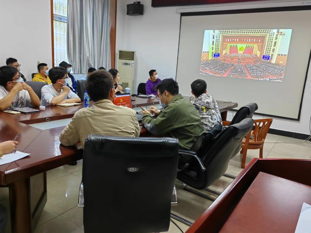 首先,全体研究生党员跟随电视直播的议程一齐起立,奏唱中华人民共和国国歌;紧接着,同志们一同怀着十分崇敬的心情,为毛泽东、周恩来、刘少奇、朱德、邓小平、陈云等已故老一辈无产阶级革命家和革命先烈默哀;随后,习近平总书记代表十九届中央委员会向大会作报告,同志们认真听取报告,并根据报告整理笔记;会议的最后,支部书记史建权表示,新濠娱乐城
