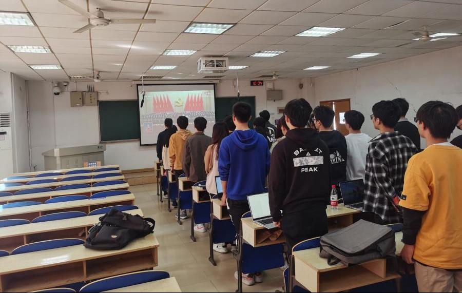 学生第三党支部组织了全体党员于科教北楼观看二十大开幕会会议直播。