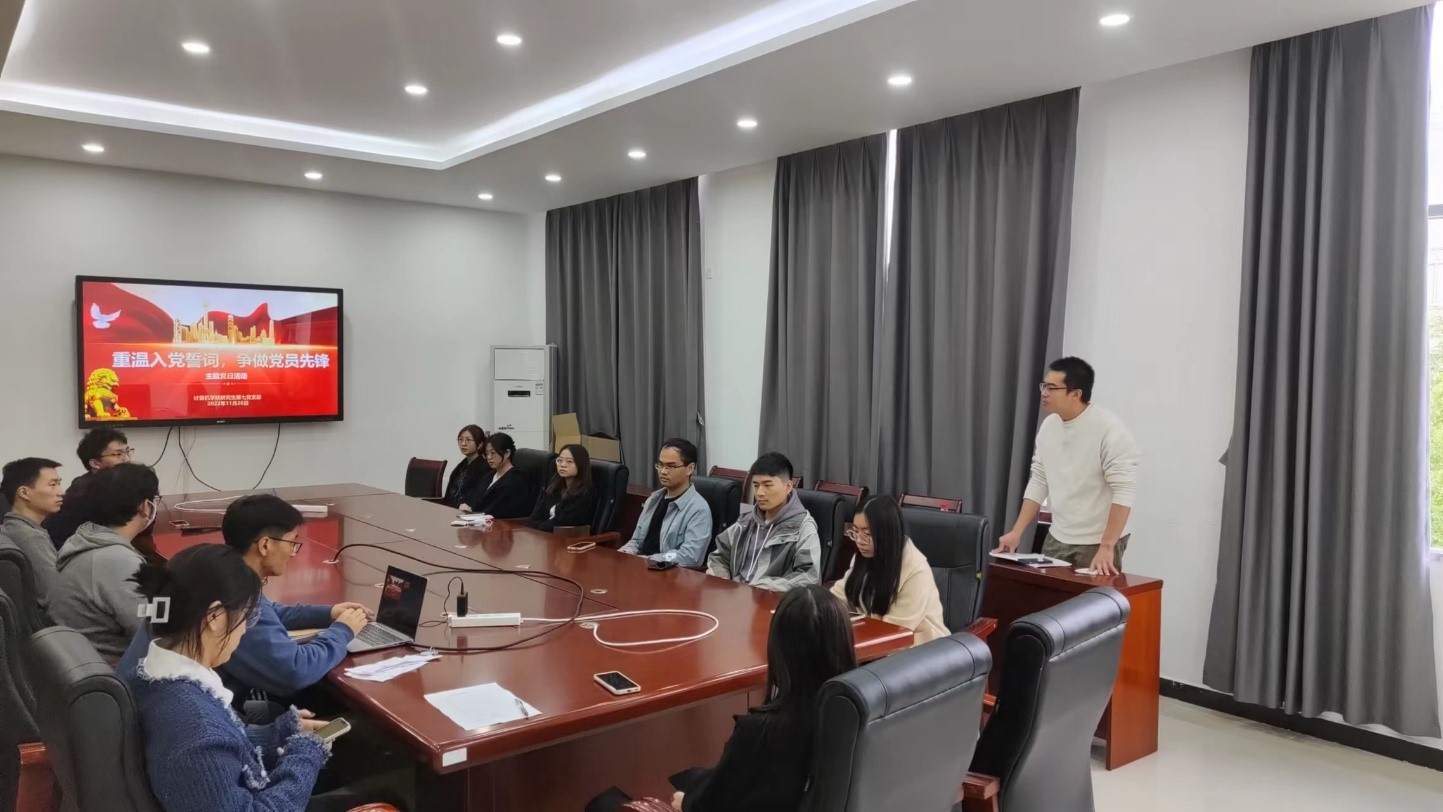 支部书记何星霖同志带领大家一起重温了入党誓词,以进一步强化四个意识,坚定理想信念。支部党员再一次举起右拳,庄严宣誓,铿锵有力,热血沸腾。短短十二句入党誓词,字字千钧,既明确了我们党对党员的基本要求,也概括了党员对党的事业所应承担的政治责任。
