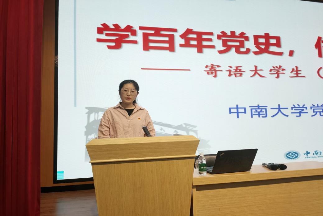 学生四支部的毕业生党员葛佳欣同志代表2023届毕业生党员发言,她回顾了自己在中南两年的入党流程和入党以来的思想转变和实践收获,推己及人,与毕业生共勉,希望能在今后的学习、生活和工作中将理论与实践相结合,不断提升党性修养,提高工作积极性和解决疑难问题的能力,努力成为一名优秀的共产党员。既有仰望星空的心境,又拥有脚踏实地的定力,坚信“春种一粒粟,秋收万颗子”的道理,沉稳踏实地走好人生的每一段旅程。