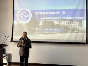 夏佳志副院长着重介绍了陈志刚教授在教学、科研和社会服务工作方面取得的卓越成绩,提到现代高校教师,特别是青年教师,如何将知识储备转化为教育能力,是一个需要研究和思考问题,由此引出接下来的国家级领军人才陈志刚教授进行的专题报告。