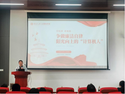 党委副书记王新辉主讲的“争做廉洁自律、阳光向上的计算机人”主题党课。