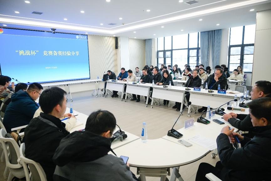 邸可达介绍了“挑战杯”竞赛的相关情况并做出专业指导。他就“挑战杯”赛制、备赛作品的关注要点和老师指导作品的基本思路等展开讲解,指出科学性、先进性、应用性是备赛作品关注的三大原则,强调备参赛作品要关注其应用价值与转换前景,要结合学生实际,体现学生的观察。他结合具体案例说明了指导作品的核心在于“展示学生的风采”,强调学生合作完成项目的过程,要向大赛评委呈现项目完成过程的来龙去脉,而不只是展示高深的既得成果。对于已经展开备赛的“升华杯”,他指出指导老师们要利用寒假的时间,发掘有潜力的项目和学生,为今年的“大挑”做好准备。