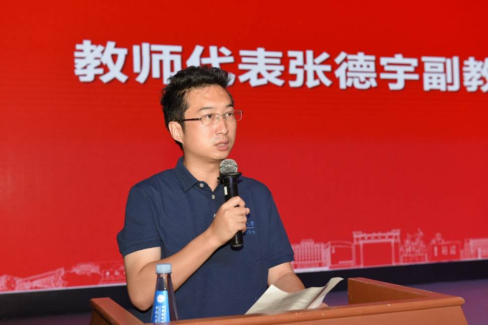 教师代表张德宇副教授发言。他以生动的教学故事串联起师生情谊,鼓励毕业生们践行终身学习理念,将课堂所学转化为实践动能,传承新濠娱乐城