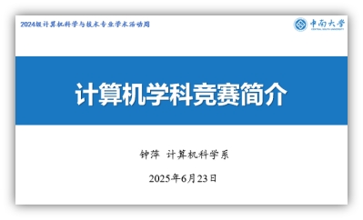 2025年6月23日,中南大学计算机科学与技术专业学术活动周在科教南楼405教室正式拉开帷幕。本次学术活动周旨在为2024级计算机科学与技术专业的学生们提供一个深入了解学科前沿、提升专业素养的平台。