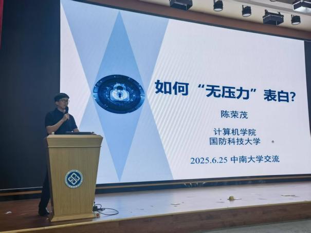 陈荣茂教授是国家优青,来自国防科技大学。他别出心裁地以“如何无压力表白?”这一趣味话题点燃现场,瞬间拉近密码学与同学们的距离。他从密码学千年演进史娓娓道来,深入浅出地阐释现代密码学核心概念。通过丰富案例阶段性展示其“前世今生”,并设计现场互动环节,让同学们亲身体验密码学的神奇应用。他还贴心地推荐了入门书籍,鼓励大家迈出探索第一步。