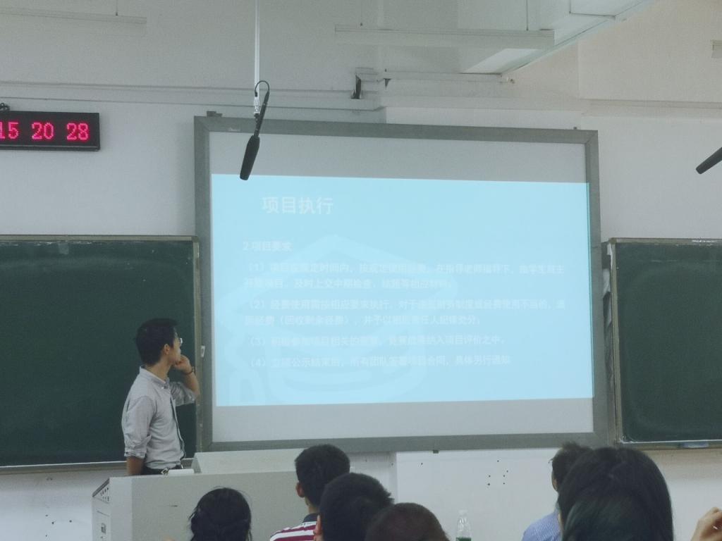 之后,刘老师对本年度创新创业项目执行的工作程序和注意事项进行了强调和说明,内容主要关于项目执行的阶段与周期、项目执行要求、项目相关参赛要求和项目的经费管理问题。其中突出强调了项目经费的使用方式和报账方式。