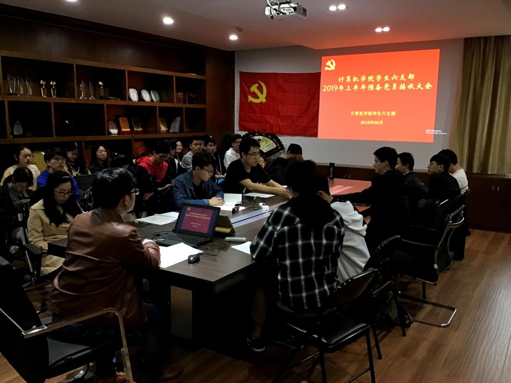 学生六支部于二综418召开了预备党员接收会议。此次会议主要议程是对燕熠新等八名发展对象的入党问题进行讨论和民主表决。学生六支部在校所有成员均以到场参加了本次会议。会议由支部书记谢怀平同志主持。
