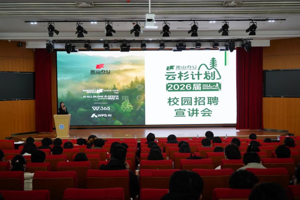 崔莹副总经理表示,金山办公深耕办公软件三十余年,希望以国产软件力量助力高校人才培养和智慧校园建设。此次带来的两份“礼物”旨在为师生提供全功能、全场景的办公服务。同时,他重点介绍了“云杉计划”——2026金山办公校园招聘暨2027届实习生招聘计划,期望为中南学子搭建优质的从校园到职场的桥梁。