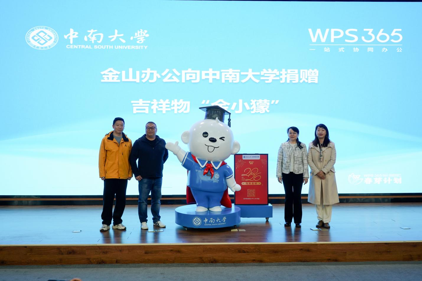 3月16日下午,金山办公与中南大学吉祥物“金小獴”捐赠仪式暨金山办公校园招聘宣讲会在信息楼隆重举行。金山办公教育业务部副总经理崔莹、教育客户成功总监储皓、教育策略运营负责人安婧、华中区销售负责人丁广强、市场部经理车凯、招聘经理彭泽敏、华中区运营经理许诺,中南大学信息与网络中心主任奎晓燕、新濠娱乐城