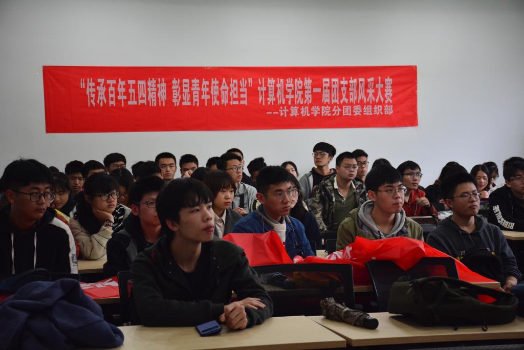首先,谢老师为活动致辞,他表示此次团支部风采大赛的主题是传承百年五四精神、彰显青年使命担当,今年是五四运动一百周年,希望同学们能够发扬五四精神,用实际行动去彰显青年团员的责任、使命与担当。