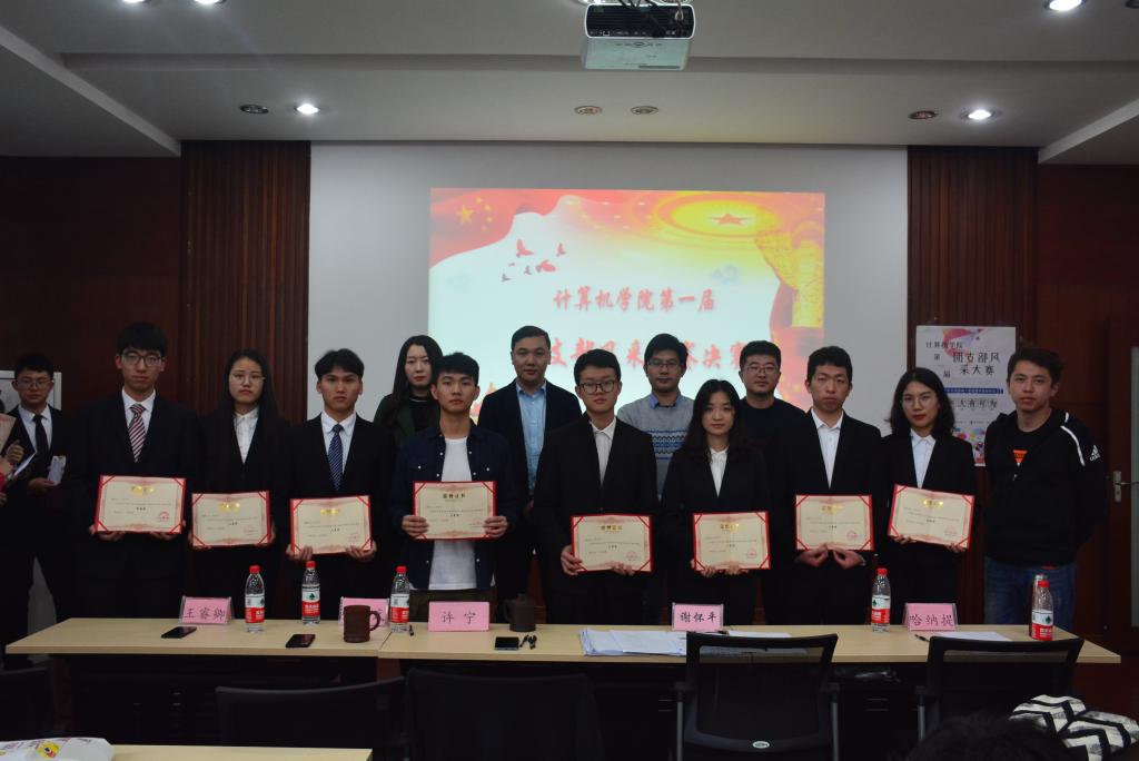 第一届团支部风采大赛在计算机楼313室举办。院分团委书记谢怀平老师以及许宁、哈纳提、王睿卿、张艳武等5位辅导员老师出席此次活动。