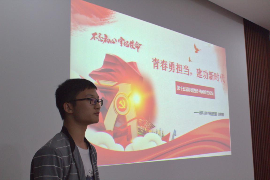 期间,六位学生主讲人以“不忘初心、牢记使命”为主题,结合党员故事,分享自己对“初心”和“使命”的理解,以及作为当代大学生如何不忘初心,不负使命。来自物联网工程1701班的管博昂同学以“我们的时代”为主题,分享了以铁路为代表的中国的飞速发展,从四个自信诠释着这个时代,是辉煌前进的时代,是我们的时代。软件工程1803班的刘佩同学为大家带来“悟英雄之意,传工匠之心”的主题演讲,向同学们介绍了她的外公的故事,传达她所理解的工匠精神。物联网1802王云鹏同学则以“逢终军之弱冠,报中华之长风”为主题,提出作为青年一代的我们,在新形势下,应当珍惜时光、挑起时代重任,报中华之长风。随后计算机科学与技术专业1807班的刘林星同学介绍了新濠娱乐城