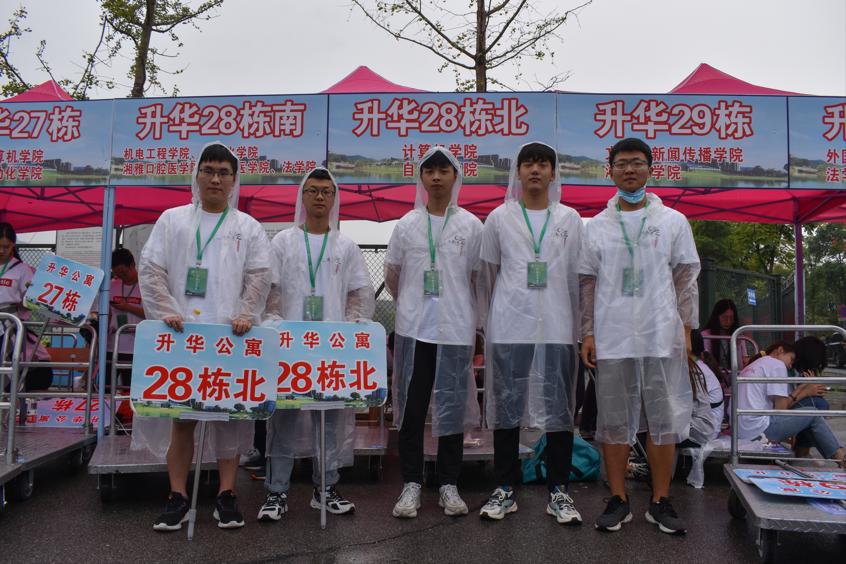 的满腔热爱付诸于迎新工作中,将勤奋、踏实、敬业、奉献的精神薪火相传。不论阳光明媚与阴雨连绵,志愿者们坚持迎新工作,坚守在各自的岗位:他们或热情四溢帮助新生指路、取快递,或在新校区和南校区之间拖着满载行李的小推车来回奔波,或协助宿管老师完成新生报到流程。