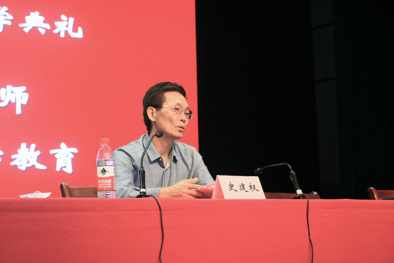 致辞结束后,院长王建新发表讲话,他言简意赅地描绘了大学生活的蓝图,同时展望美好的未来。王院长认为,学生们一是要认真学习专业知识,抓住机遇,勇于创新,担负起时代赋予计算机学子的使命;二是要提高综合素质,在这一人生阶段锻炼自己,不仅学习书本知识,还需要学习课外知识;三是要锻炼体魄,养成良好的生活习惯,全面发展。