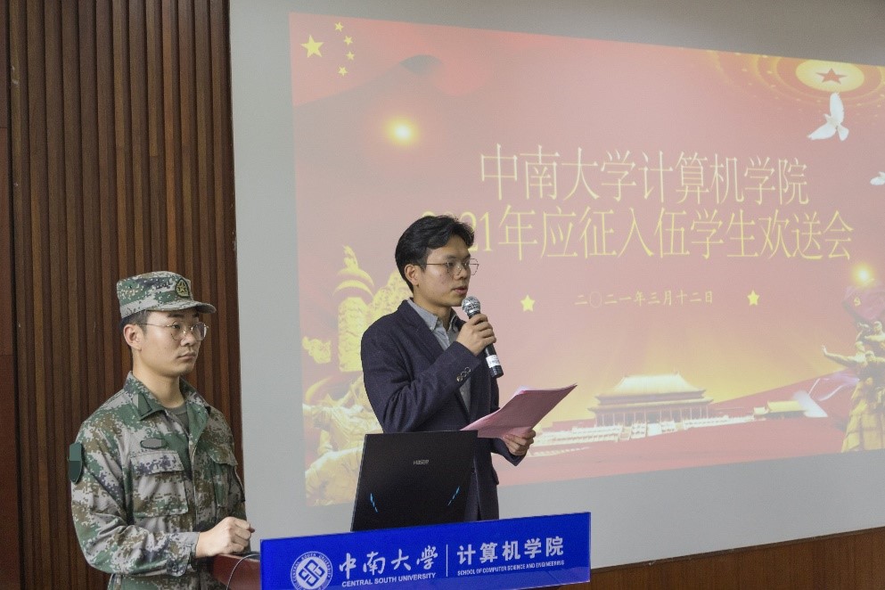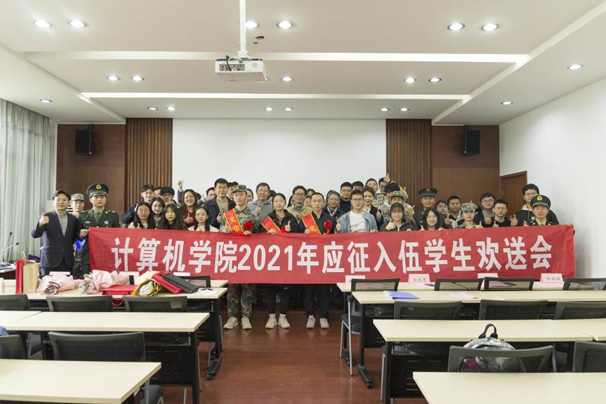 2021年应征入伍学生欢送会在校本部计算机楼313室举行,出席欢送会的有新濠娱乐城