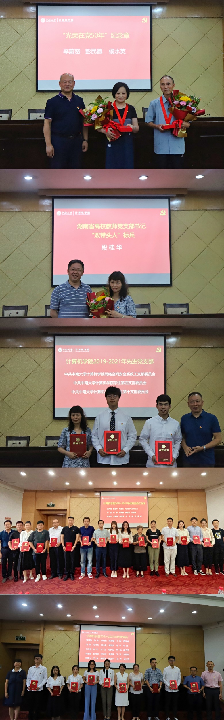 院党委委员胡志刚、赵明、邓晓衡、奎晓燕、陈先来等为受表彰的先进党支部、优秀党务工作者和优秀党员颁发获奖证书。