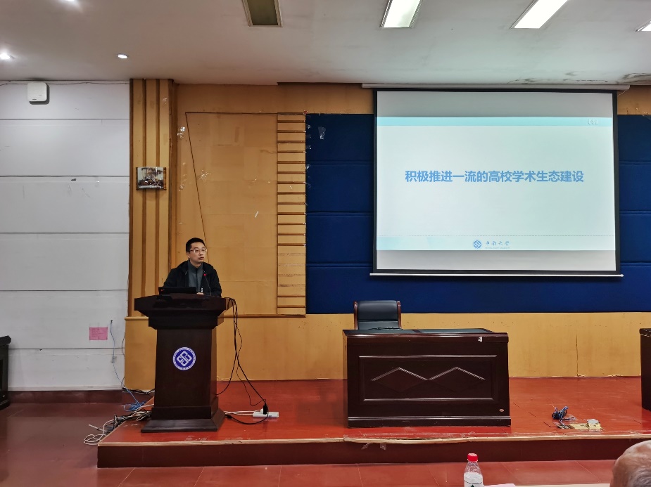 最后他向全体教职工传达了学校学术生态建设的未来目标:十四五期间,进一步建立健全学术标准,完善工作机制,营造一流的学术生态环境,重点构建好激励机制、评价机制。通过3-5年的努力,基本形成以质量、绩效和贡献为导向的中南大学科研学术生态,构建权威、公开、透明的科学评价体系,打造求是、严谨、包容的学术生态环境,杜绝功利、浮躁、虚夸的科研学术现象。