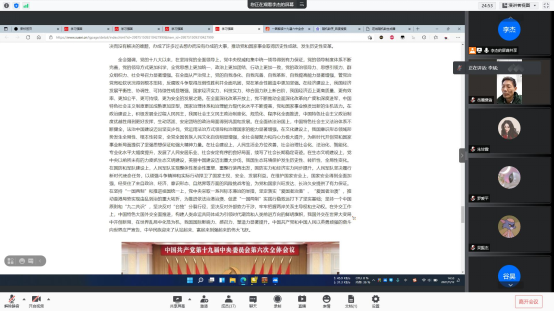 研十支部通过音频会议的形式在“腾讯会议”平台上开展了“学习第十九届六中全会精神”主题线上支部会议。