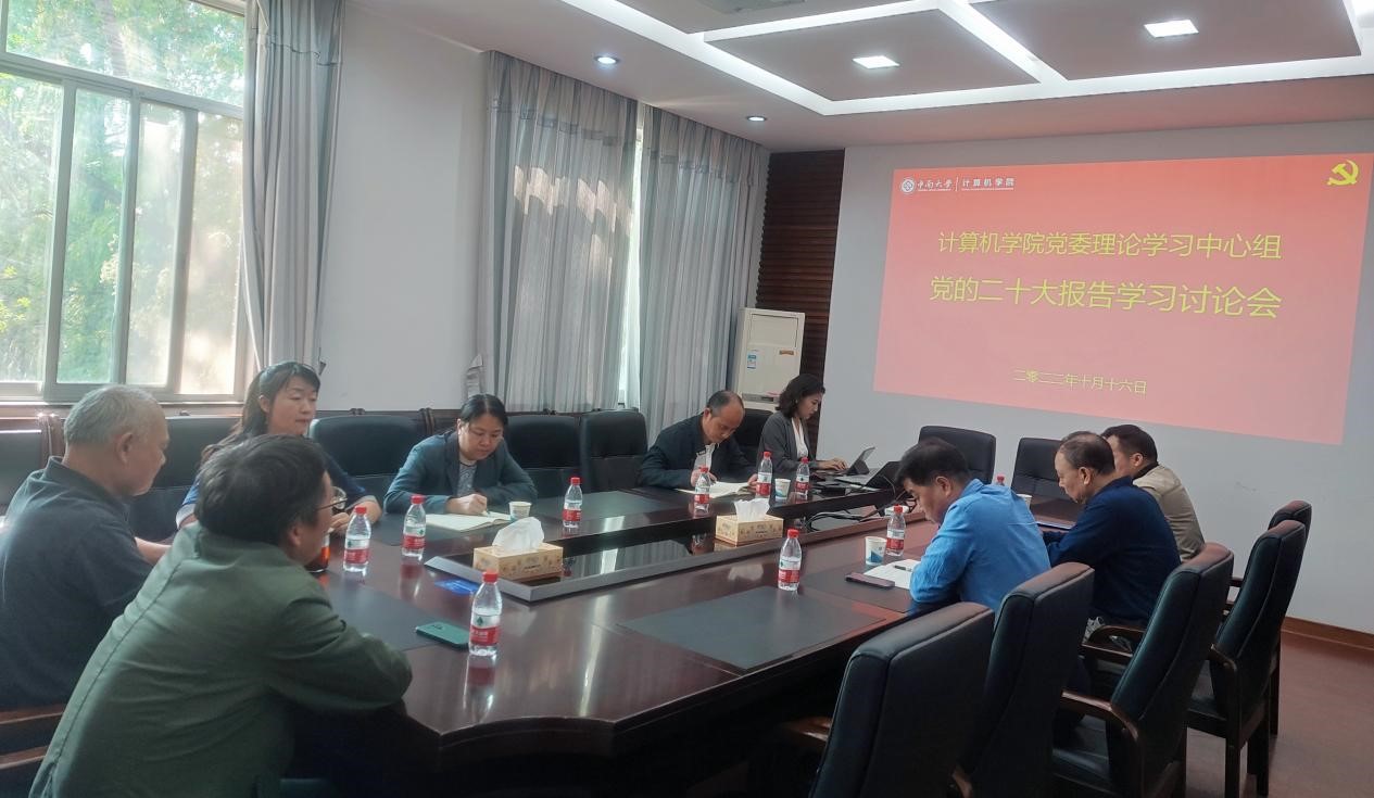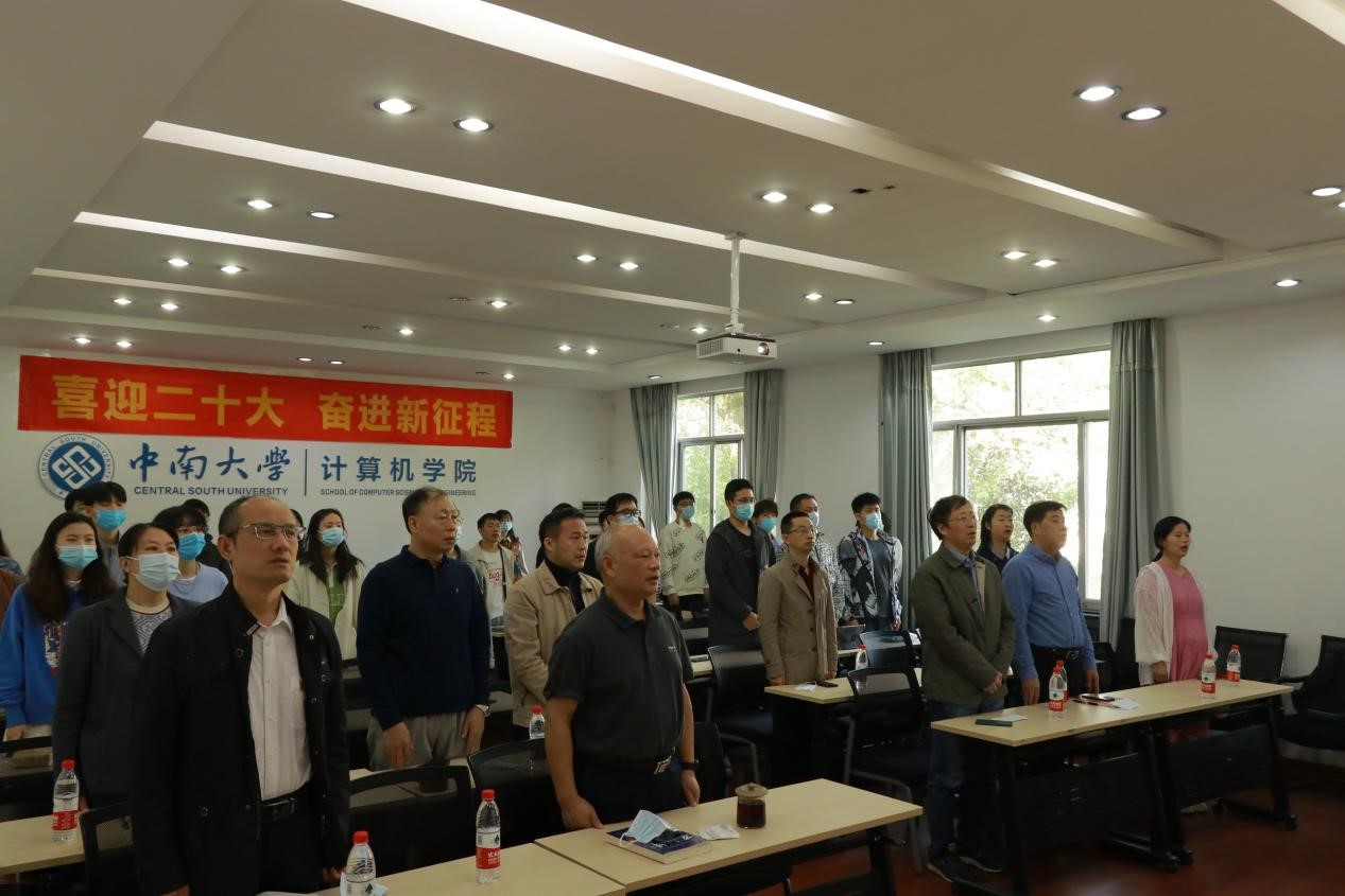 党委理论学习中心组全体成员及师生党员代表在计算机楼313集中观看中国共产党第二十次全国代表大会开幕会。收看过程中,在场人员聚精会神听报告,全神贯注作笔记,真正融入到党的二十大盛会召开的浓厚热烈氛围中。