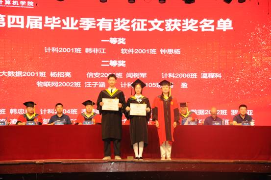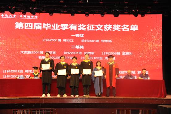 党委副书记王新辉宣读了有奖征文获奖名单,党委书记赵晓霞、大数据院院长龙军、党委副书记王新辉等领导给获奖同学颁获并一起合影留念。