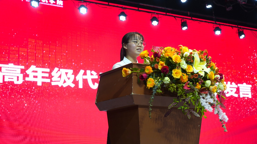 计算机科学与技术2107班张诗曼和计算机类2408班马艾琳则分别作为高年级代表和新生代表发言,与新生们分享了自己的成长经历与学习心得。张诗曼向新生们表示了热烈的欢迎和由衷的祝贺,希望学弟学妹们能够充分利用大学的资源和机遇,在丰富多彩的大学生活中全面提升自我,积极拥抱大学的无限可能,创造一段充实而难忘的大学时光。马艾琳表达了对未来四年大学的生活的无限憧憬,希望能够与同学们一同拥抱新环境,走出舒适圈,突破自我,不畏挫折,学以致用,在探索科学世界的旅途中为母校书写新华章,为党和国家做出自己的贡献。