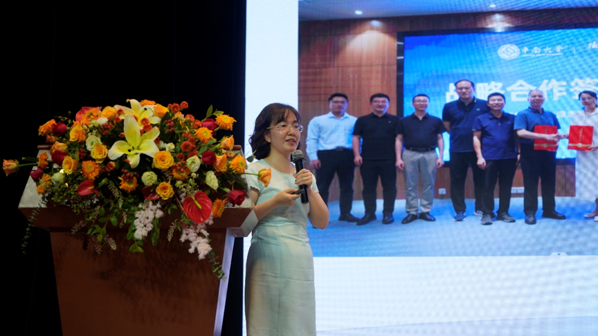 将与家长一道教育和引导学生在崭新的赛道上奔跑出更加亮眼的成绩,为社会的发展与进步继续贡献中南计算机力量。她送给新生们“三个拥抱”的入学寄语,希望新生转换角色,拥抱变化,在新的环境下,去探索新的精彩;知行合一,拥抱学问,将自我的青春梦想融入到祖国发展的伟大征程中;悦纳自己,拥抱健康,感知内在的美好,探索分享的快乐。