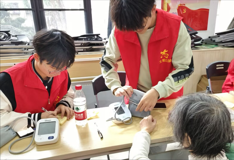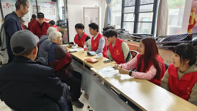 2024年12月9日上午九点,晓康e家小队在中南大学南校区云麓园社区党群活动中心顺利举行了百人百项志愿服务工程活动。该活动旨在通过现场量血压心率等方式,并结合晓康e家小程序,让老年人更好地对自身健康做到自查,更好地了解自己的身体情况。同时本次志愿活动也通过志愿者对老年人的聊天与关怀,给老年人的生活增添了一丝乐趣。