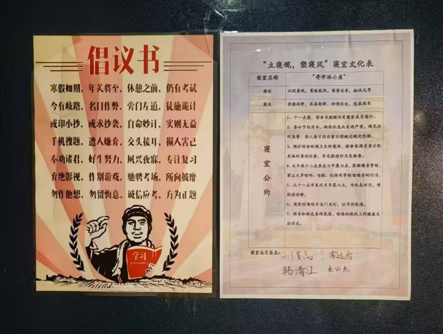 自此次活动开展后,共有51个寝室积极响应,制定了51份寝室公约。同学们深知寝室公约是营造良好寝室氛围的重要保障,承载着大家对和谐寝室的共同期许。