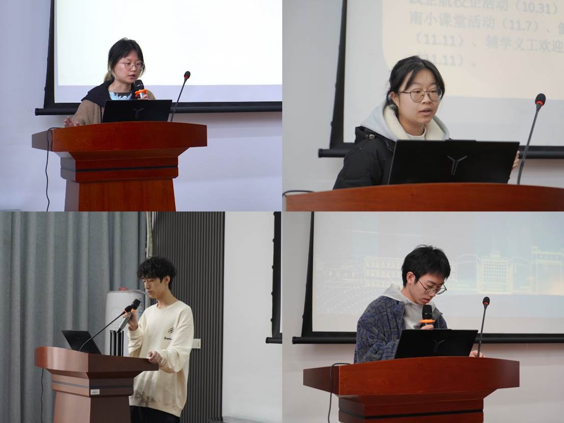 会议依次听取了综合事务办公室部长卿晨、新闻办公室部长欧阳晓莹、新媒体办公室部长薛列钦及设计办公室赵文泓的总结汇报,四位负责人分别就部门统筹效能提升、采编流程优化、平台传播建设及设计视觉强化等专项工作展开总结与规划。