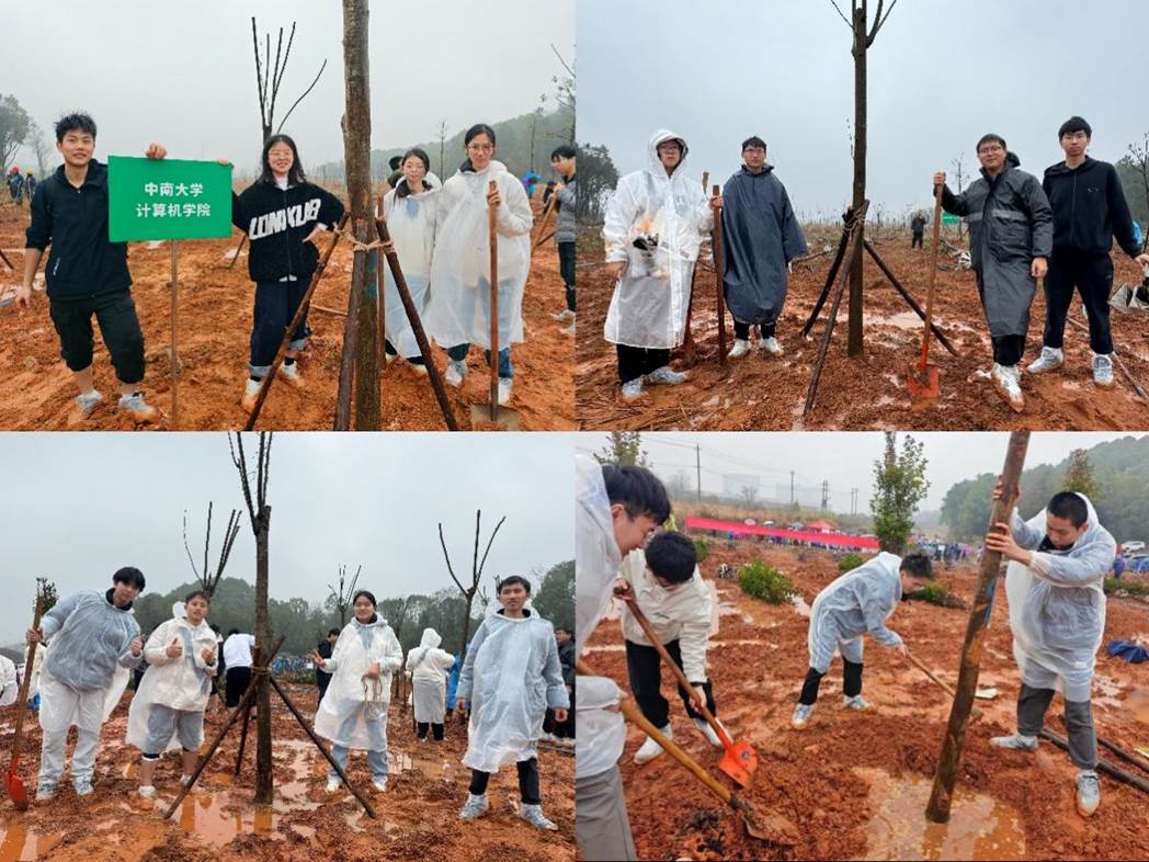 计算机类2401与2408团支部联合举办的雷锋月义务植树团日活动在长沙柳树塘义务植树基地顺利完成。这不仅是一次简单的植树活动,更是一堂生动的春日劳动实践课,一场挥洒青春汗水、践行绿色使命的热血奔赴。