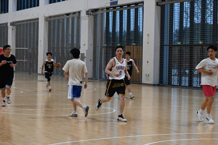 团委书记陈司宇、团委副书记袁熠亲临赛场,或挥汗上阵,或加油助威。比赛中,毕业生们默契配合、攻防有度,敏捷的身手与精准的投篮点燃全场。两队的精彩对决,既展现了竞技体育的魅力,更诠释了同窗的深厚情谊。