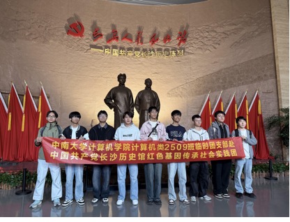 计算机2509班团支部的另一支实践团前往湖南烈士公园与中国共产党长沙历史馆,依托红色资源开展沉浸式学习。成员们在红色地标中重温峥嵘岁月,在精神洗礼中汲取奋进力量,进一步读懂了红色基因的深刻内涵。