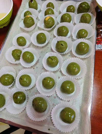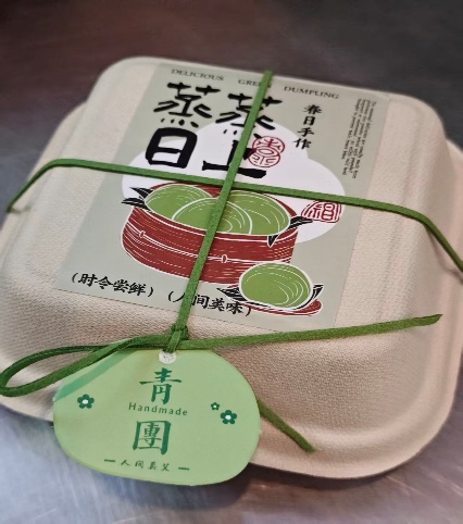 在动手制作环节,同学们分组协作、配合默契,纷纷化身“面点师”。称量食材、揉捻糯米团,再包裹上咸蛋黄、豆沙、奶黄等多样馅料,大家在工作人员的辅助下大胆尝试,发挥创意,将专业巧思融入传统美食的制作之中。指尖流转间,一个个圆润饱满、造型精巧的青团陆续成型,现场气氛轻松热烈,欢声笑语不断。制作完成的青团经统一蒸制后新鲜出炉,色泽翠绿,香气扑鼻。同学们围坐在一起,品尝亲手制作的美食,软糯香甜的口感满载春日气息。大家交流制作心得,畅谈对传统文化的感悟,在劳动成果中体会传承的意义,在互动交流中增进同窗情谊。