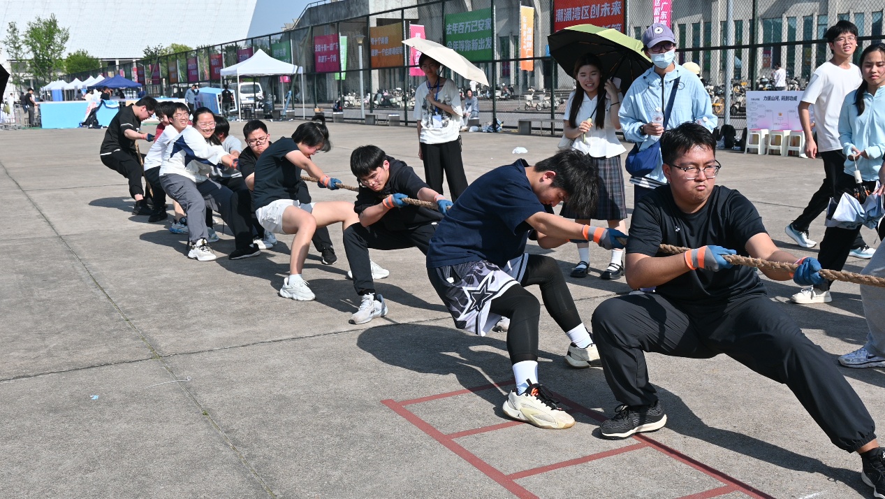比赛现场气氛热烈,随着裁判一声令下,参赛队员们紧握长绳、重心下沉、咬紧牙关,双脚用力蹬地,身体协同发力,在一来一回的僵持与拉扯中拼尽全力。场外啦啦队呐喊助威,“加油”声此起彼伏,成为赛场上最动人的背景音。