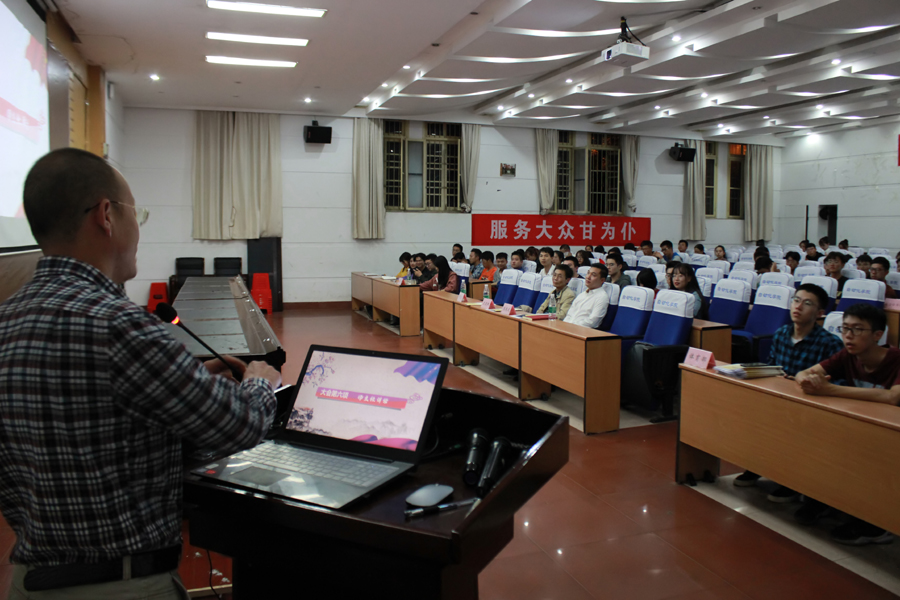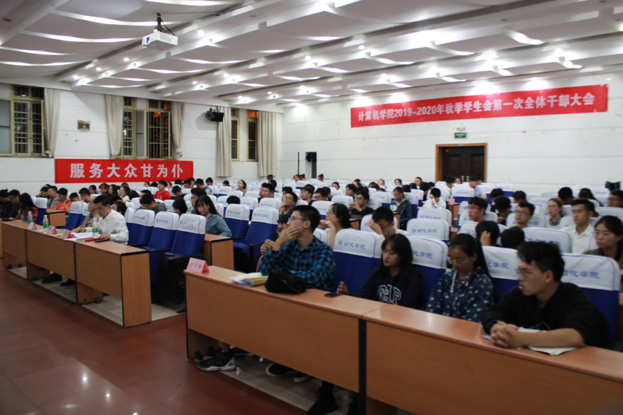 接着,学工办主任师雷宏老师讲话,他表达了对老师和学生工作的肯定,也对学生会提出新的意见和要求:希望干事们在计算机院七大学生组织下,树立大局观念、整体意识,拥有大视野和大胸怀。