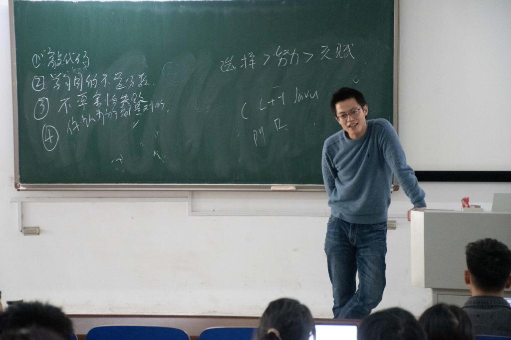 他指出:学科竞赛能为每一位同学提供一个将理论转化为实际的机会,竞赛中获得的成就感将会成为同学们学习进步的正向助推力。同时,他向各位同学介绍了现阶段可以参加的各类比赛,帮助同学们了解了各类竞赛的基本情况。