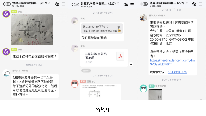 此次各门课程的辅导活动通过录制好上传b站的方式进行,方便同学根据自己的时间状况分配复习进度。也建立了专门的答疑群,提供同学线上互帮互助的平台,发布许多复习资料,帮助同学准备期末。同时群内安排辅学义工线上答疑,尽量立即解决同学们的问题,帮助同学顺利完成学业考核。