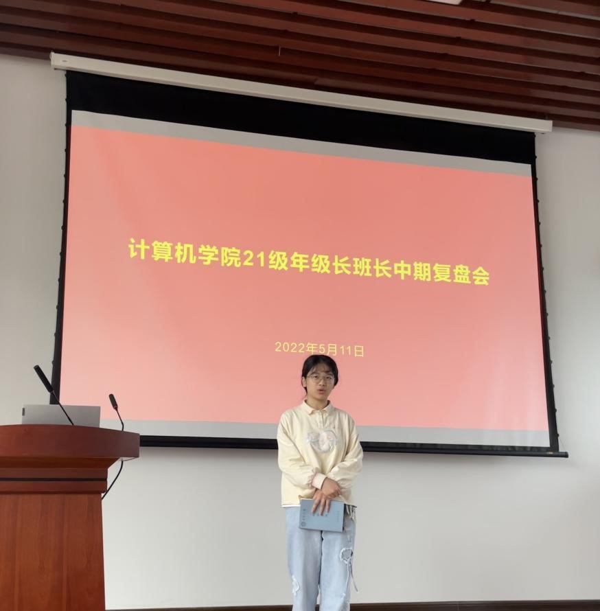 21级辅导员迟旭、宋晓萌,以及21级的年级长、副年级长和各班班长,共同开展了年级长班长中期复盘会。