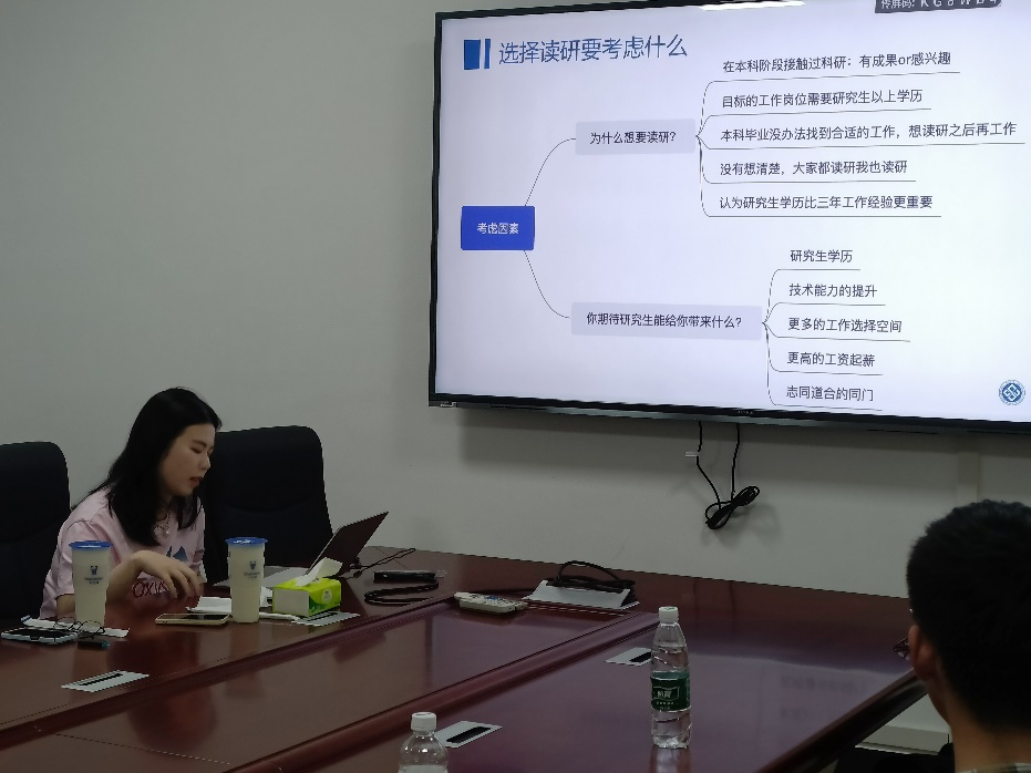 在铁道校区软件专场,李智涵学姐和谢菀菁学姐以自己的科研、实习经历为例,向大家分析了读研与工作的利弊。