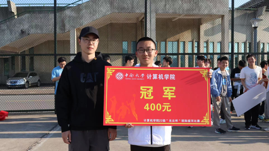 四轮跳绳比赛,三轮拔河比赛,汗水沁透衣衫,最终的胜者也就此决出。最后,由辅导员老师和年级会成员为获胜的六个班级颁发冠亚季军的奖牌,欢庆和留念过后,此次“光云杯”比赛也圆满结束。