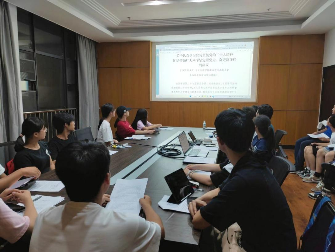 会议伊始,全体参会人员在达泽文同学和杨函泰同学的讲解下,认真学习了《关于认真学习宣传贯彻党的二十大精神,团结带领广大同学坚定跟党走、奋进新征程的决议》《在全国学联第二十七届委员会第二次全体会议上的工作报告》和《共青团指导学生联合会工作的若干规定(试行)》等文件。通过对文件的解读,全体人员更好地理解和领会了文件精神。文件指出,学联学生会是党领导下的青年群团组织,团委、学生会工作是党的青年工作的重要组成部分,要积极发挥桥梁纽带作用,聚焦主责主业,把服务同学和服务大局落到实处,进一步明确学生会深化改革的各项部署。同时积极学习理论知识,高举习近平新时代中国特色社会主义思想伟大旗帜,认真学习宣传贯彻党的二十大精神。通过研读学习理论知识,积极参与讨论,参会人员提高了自身理论水平,明确了团委、学生会未来的前进方向。