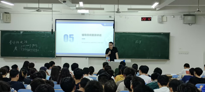 大会第四项,辅导员何星霖老师就实训及近期重要事项作补充说明。何老师强调了搬校区和实训期间的报寝纪律和重要性,并对实训过程中可能遇到的一些具体的问题做出了安排,此外还介绍了选课和暑期留校相关问题。