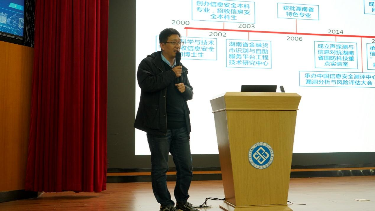 网络空间安全系主任张士庚老师介绍了信息安全专业的优势及发展前景,通过近三年毕业学生去向的相关数据,鼓励学生尽早根据个人发展规划选择努力方向。