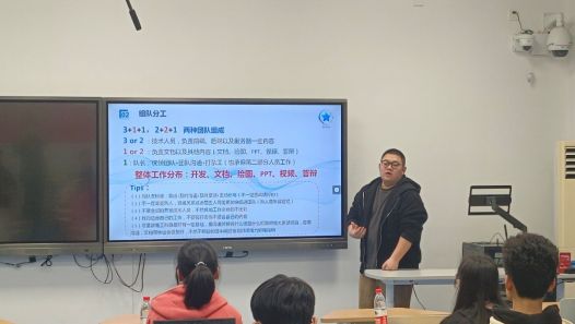 随后,来自“随便起名队”的蒋仲尧学长总结了自己团队的参赛经历,他着重分析了初次参赛过程中可能出现的困难,并给出合理建议,令同学们深受启发。