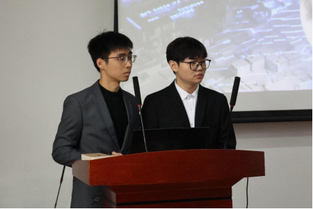 科协竞赛部组织,出席的嘉宾有钟萍教授、任胜兵教授和费洪晓教授。本次校赛共有四支参赛队伍参与,活动流程包括主持人讲话、答辩环节以及专家点评。